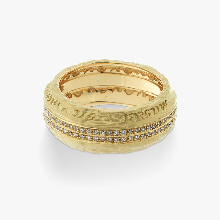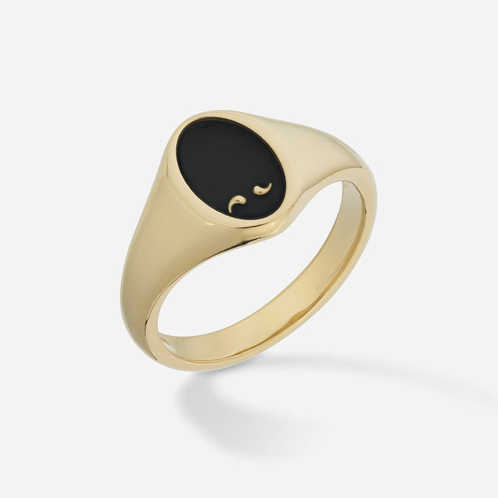 Men’s 18kt solid gold signet rings and band rings crafted in 18kt yellow or rose gold, with select designs incorporating natural diamonds or enamel accents.