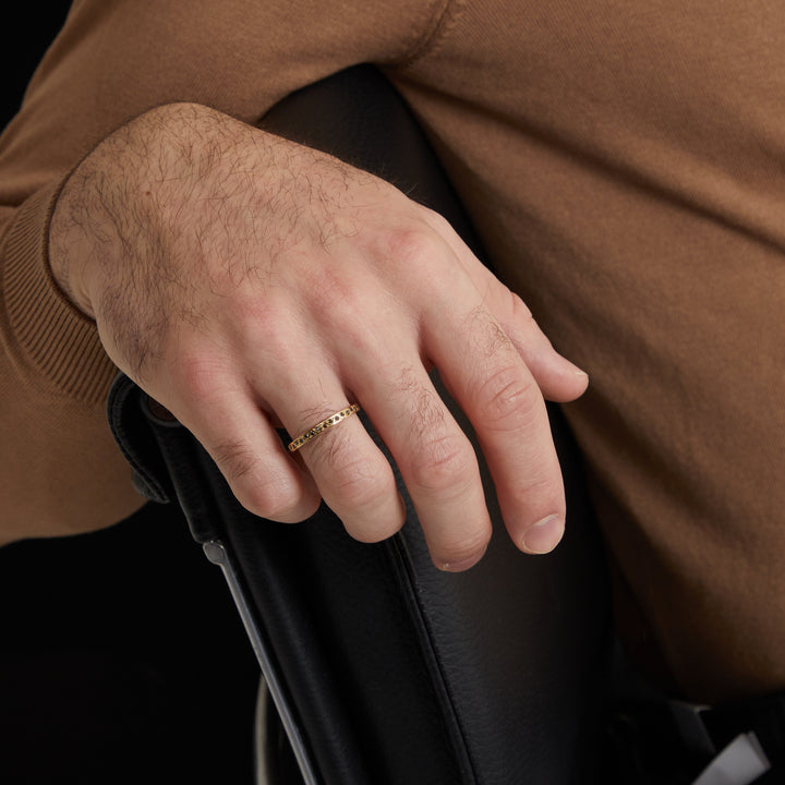18kt gold contains 75% pure gold alloyed with other metals for strength and durability, while 24kt gold is nearly pure and softer. For men’s jewelry, 18kt gold offers the ideal balance of richness and resilience.