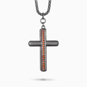ACIES Cross Gemstone Pendant Oxidized Silver, Black Enamel, Black Diamonds