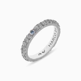 The Diamonds'N'Roses Gemstone Ring features stunning blue sapphires set in oxidized silver, making it a striking piece for any occasion.