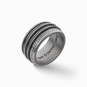 ACIES Gemstone Band Oxidized Silver, Black Enamel, Black Diamonds