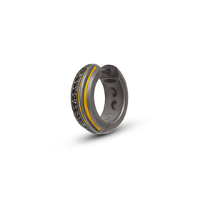 Experience the pinnacle of masculine luxury with the Acies Black Matte Silver Earrings. These masterpieces are adorned with 0.20 carats of lustrous black diamonds, set against a backdrop of deep yellow enamel. The matte silver finish adds a contemporary edge to these iconic pieces, making them a perfect symbol of strength and sophistication for the man who wears them.