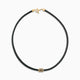 The Acies Matte Vermeil Roller Necklace – a luxurious accessory that exudes sophistication. This necklace features a pendant of 18K yellow gold vermeil with a matte finish, offering a modern twist on classic elegance. The black enamel detailing provides a stark, handsome contrast, while the leather cord adds a touch of rugged charm. It’s a piece that perfectly balances opulence with a contemporary edge, ideal for the man who values both tradition and modernity.