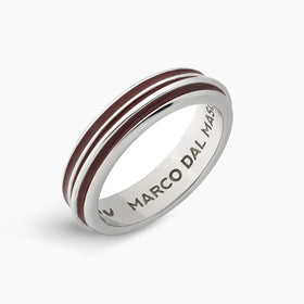 Acies Slim Polished Silver Band with Red Enamel: a statement of elegance and passion. Crafted from polished silver, this slim band features vibrant red enamel detailing, adding a bold touch to any outfit.