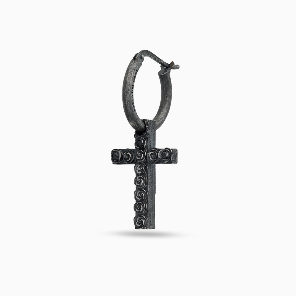 The Diamonds'N'Roses Oxidized Mono Earring is crafted from oxidized silver and adorned with 0.06 ct pave set black diamonds. A bold and contemporary piece for everyday luxury.
