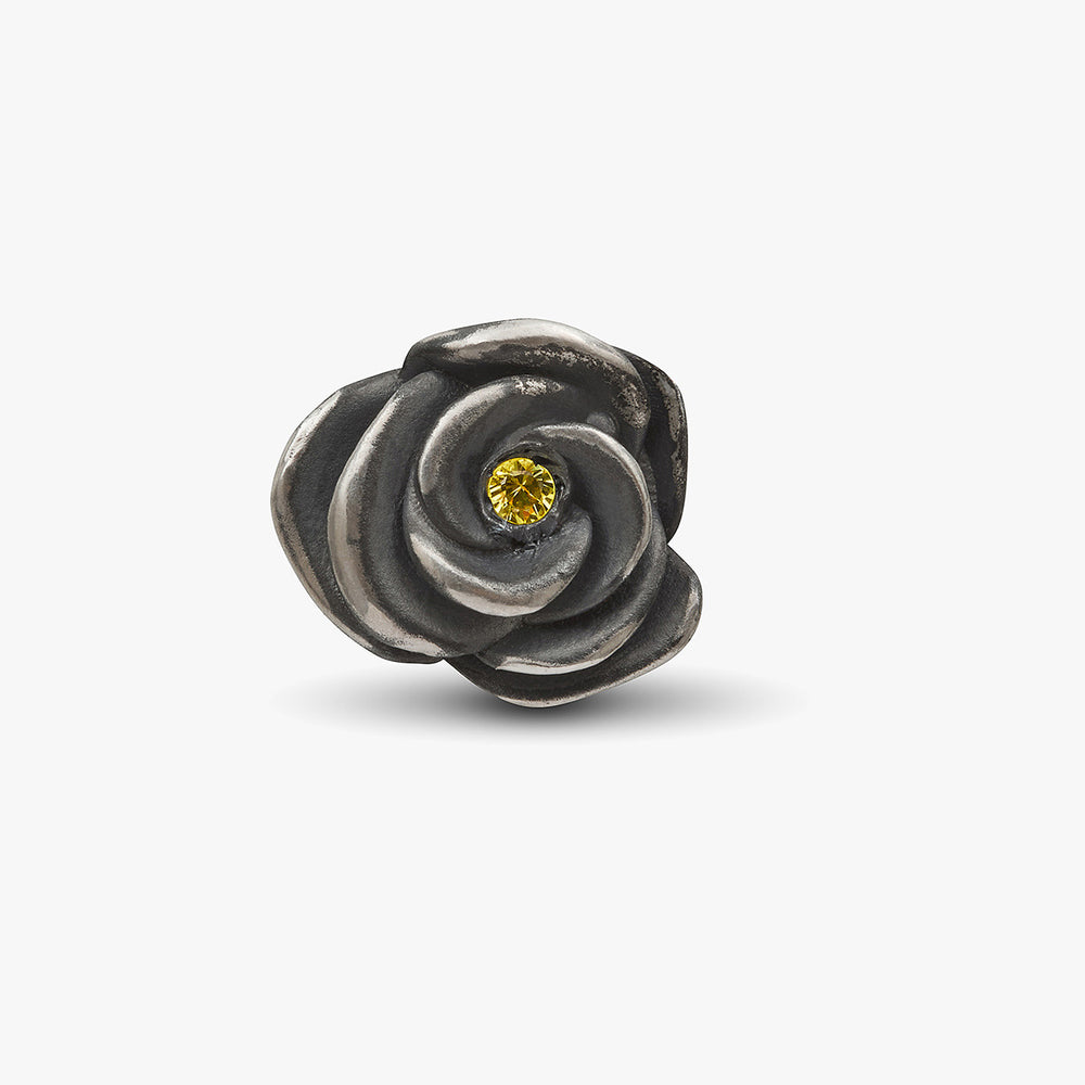 The Diamonds'N'Roses Yellow Sapphires Earring features 0.031 ct pave set yellow sapphires set in oxidized silver. A modern, bold accessory that adds a touch of luxury to your collection.