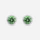 The Eclipse Luna Halo Earrings express clarity through colour. A 2.08ct green lab grown diamond is surrounded by a 0.14ct white halo in platinum, creating a cool, sculptural composition that feels both vivid and controlled.