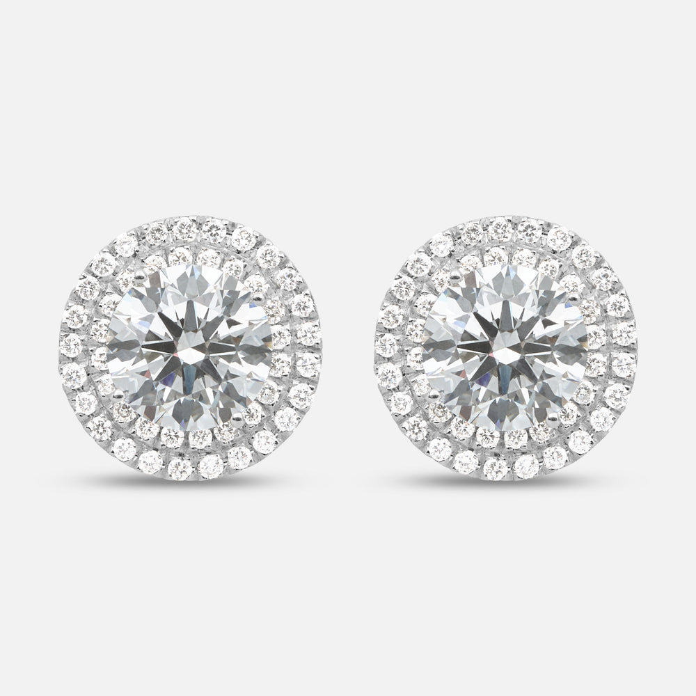 The Eclipse Luna Starburst Earrings refract light through layered brilliance. A central 2.10ct white lab-grown diamond is surrounded by a 0.34ct halo, set in platinum. The result, clean luminosity, elevated through celestial symmetry.