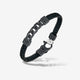 FLAMING TONGUE Chain ID Braided Leather Bracelet, Oxidized Silver, Black Diamonds, Black Leather