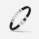 FLAMING TONGUE Chain ID Braided Leather Bracelet Polished Silver, Black Diamonds, Black Leather
