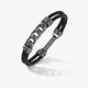 FLAMING TONGUE Chain ID Double Wrap Bracelet Oxidized Silver, Black Leather