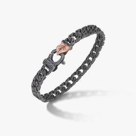 The Flaming Tongue Oxidized and Polished Bracelet with Black Diamonds features the perfect contrast of textures and finishes, combining polished silver with oxidized elements for a striking effect.