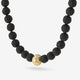 The Icon Beaded Eternity Necklace with Black Onyx offers a bold yet elegant look, crafted from 18K yellow gold and featuring black onyx beads. This piece adds a touch of modern sophistication to any outfit.