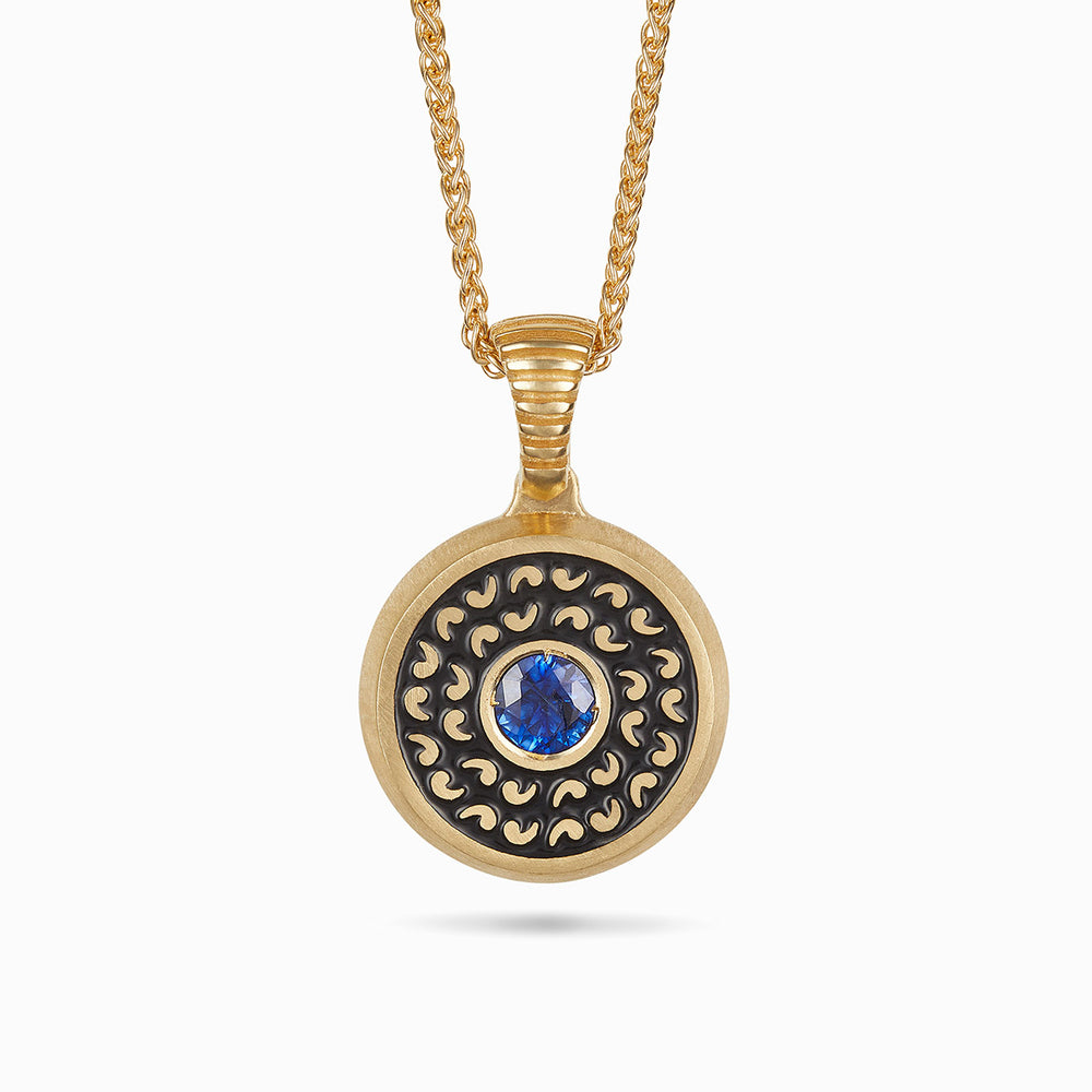 The Icon White Diamond Pendant combines 18K yellow gold with black enamel and a stunning 0.21ct white diamond, making it a luxurious statement piece perfect for special occasions.