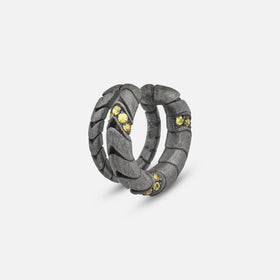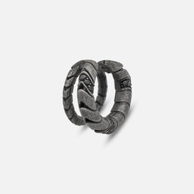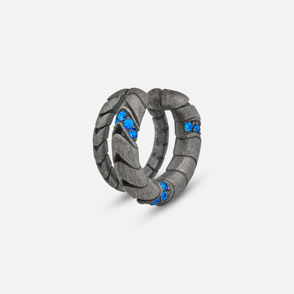 Crafted in oxidized silver and set with pavé blue sapphires, this Iron Snake ear cuff brings a deep-toned elegance to the collection’s serpentine silhouette. Designed to slip on without piercing.