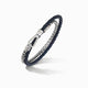 This Lash bracelet features polished silver and blue braided leather in a double wrap design, creating a modern and sleek accessory for men. Ideal for those who enjoy bold yet elegant pieces that elevate their personal style.