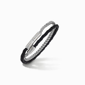 - Double oxidized silver chain and black braided leather
