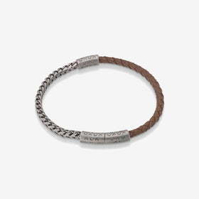 This Lash Chain & Braided Leather Bracelet combines black braided leather with oxidized silver chain, blending rugged elegance with contemporary design.