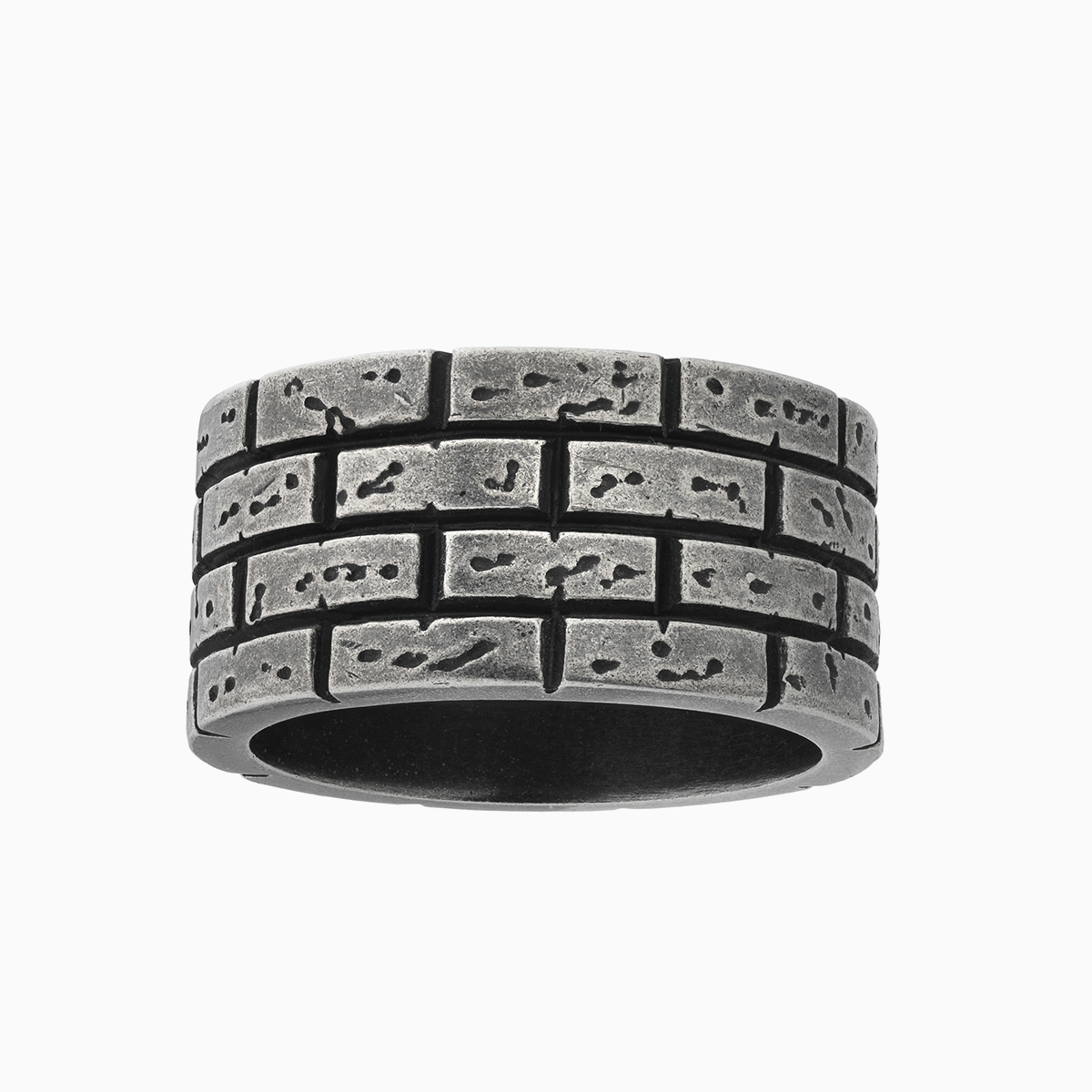 The Murales Oxidized and Black Enamel Wide Ring offers a bold, modern aesthetic with its oxidized finish and deep black enamel.