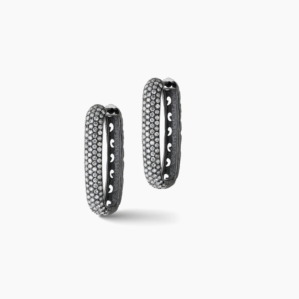WARRIOR Hoop Long Earrings 18K Rose Gold with Black Diamond