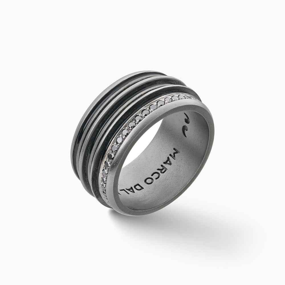 Acies Band with Tsavorite and Green Enamel: a fusion of nature's beauty and sophistication. Crafted from black matte silver and embellished with Tsavorite (0.7 ct) and green enamel.