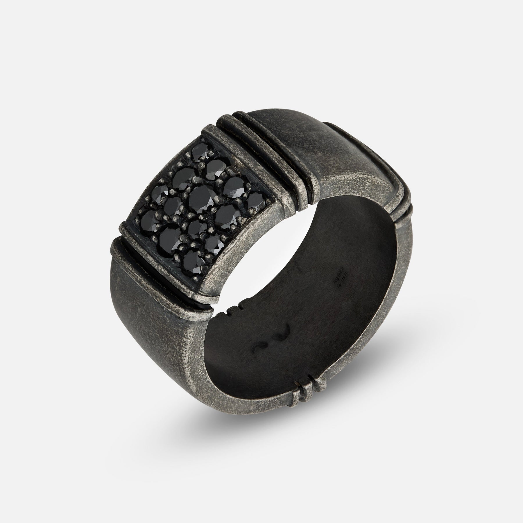 • Sterling silver band with hand-applied black enamel detailing