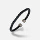 ACIES LEATHER CUFF Oxidized Silver, Black Enamel, Black Leather