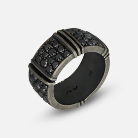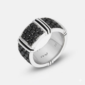 ACIES Supreme Echo Band Polished Silver, Black Diamonds, Black Enamel