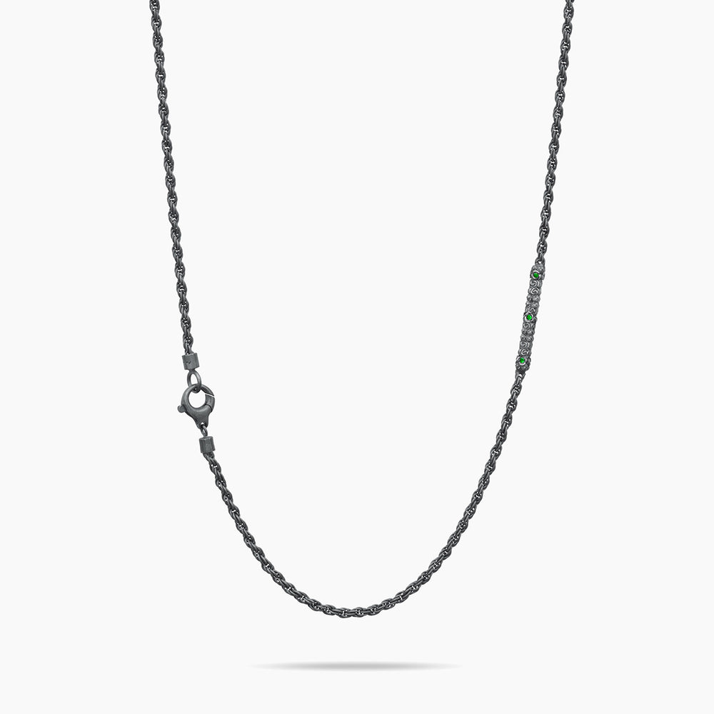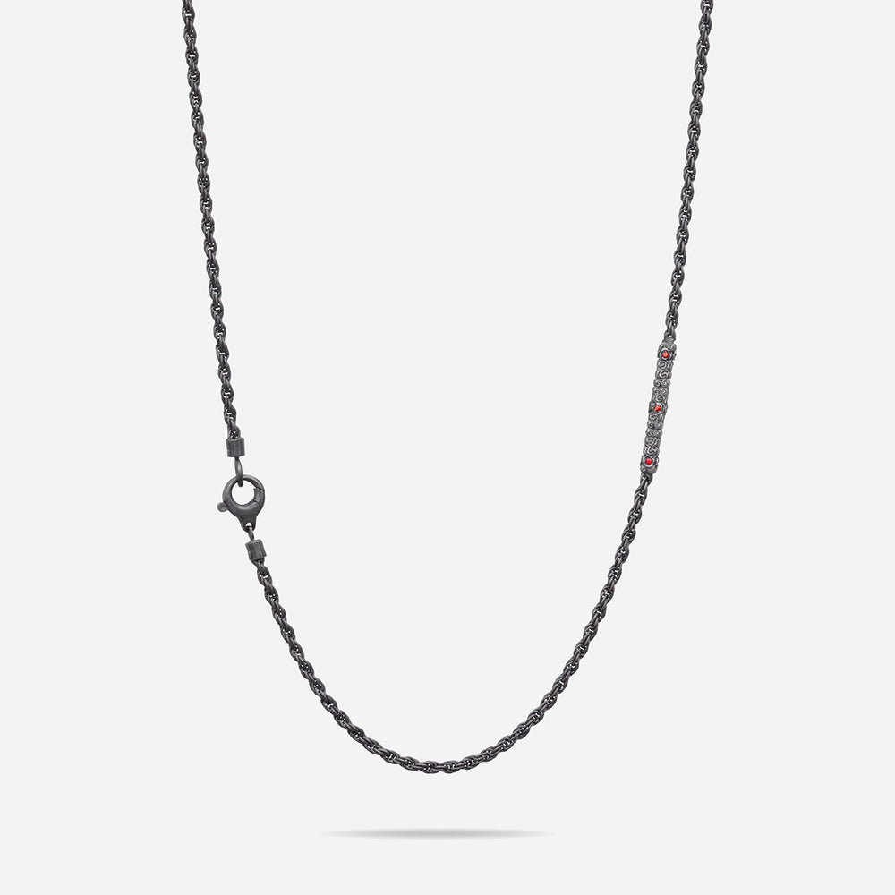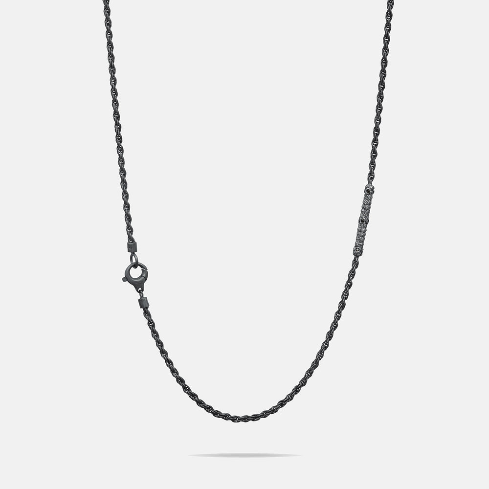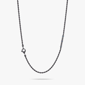 The Diamonds'N'Roses Silver Chain in oxidized silver with blue sapphires is a refined and elegant piece. Adorned with 0.22 ct blue sapphires, pave set by hand, it offers a luxurious and vibrant pop of color to any ensemble.