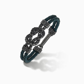 The Lash Chain Reef Knot and Green Leather Bracelet brings together rugged craftsmanship and luxurious materials. The oxidized silver chain reef knot design combined with green leather creates a bold yet refined accessory. Ideal for adding a touch of sophistication to any outfit.
