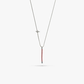 The Lash Long Drop Red Leather Pendant is an eye-catching accessory crafted from vibrant red Italian leather, set in sterling silver. Perfect for men looking to make a bold style statement while maintaining a sense of elegance.