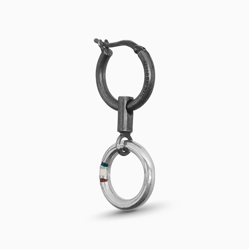The Ulysses Tri-Color Manette Drop Earring combines bold, polished silver with the vibrant hues of red, white, and green enamel. This distinctive piece captures both tradition and modern flair, making it a versatile addition to any manโs jewelry collection.