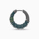 Acies Hoop Gemstone Earring in Oxidized Silver with Green Enamel and Tsavorite: a refined expression of balance and vitality. The oxidized silver form is traced with smooth green enamel and pavé-set tsavorites, creating a piece that blends understated strength with organic brilliance.