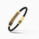 ACIES Caged Gemstone Bracelet Yellow Gold Matte Vermeil, Black Enamel, Black Leather, Black Diamonds