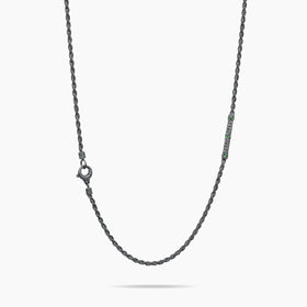 The Diamonds'N'Roses Silver Chain in oxidized silver with tsavorite is a luxurious and sophisticated accessory. Featuring 0.22 ct pave set tsavorite, this chain offers a rich, vibrant green hue that complements any ensemble.