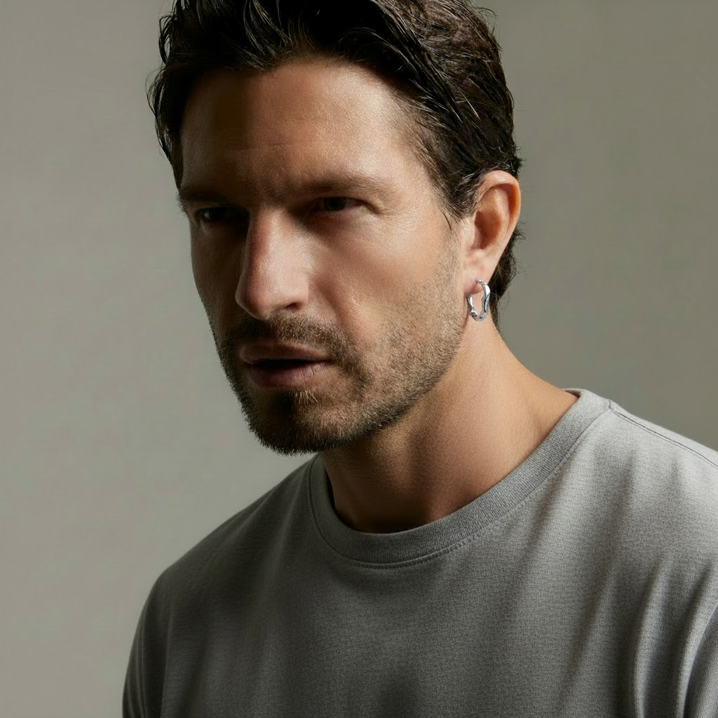 - A modern mono earring perfect for any occasion