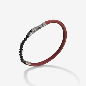 The Lash Mini Onyx Beads Bracelet combines smooth red Italian leather with polished onyx beads for a striking accessory. This bracelet offers a vibrant yet sophisticated look, designed for those who dare to make a bold statement.