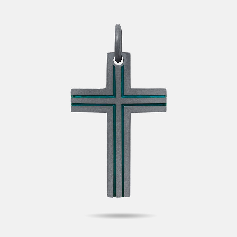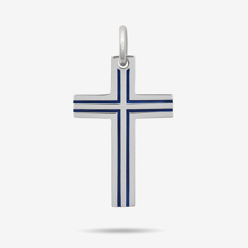 THE CROSS Enamel Stripes Amulet Polished Silver, Blue Enamel