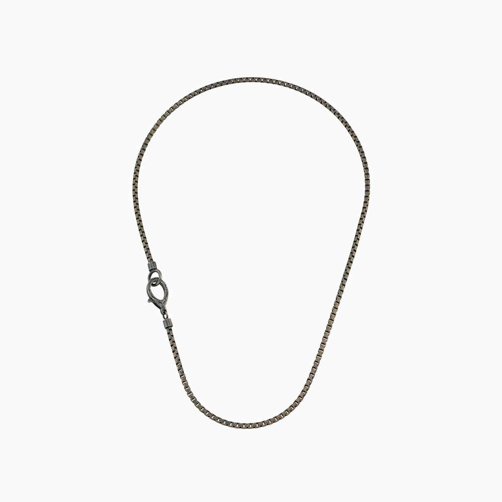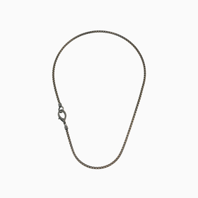 The Ulysses Carved Tubular Necklace in oxidized silver is designed to make a bold statement. With its length and distinctive carved tubular design, this piece combines rugged texture with modern sophistication.