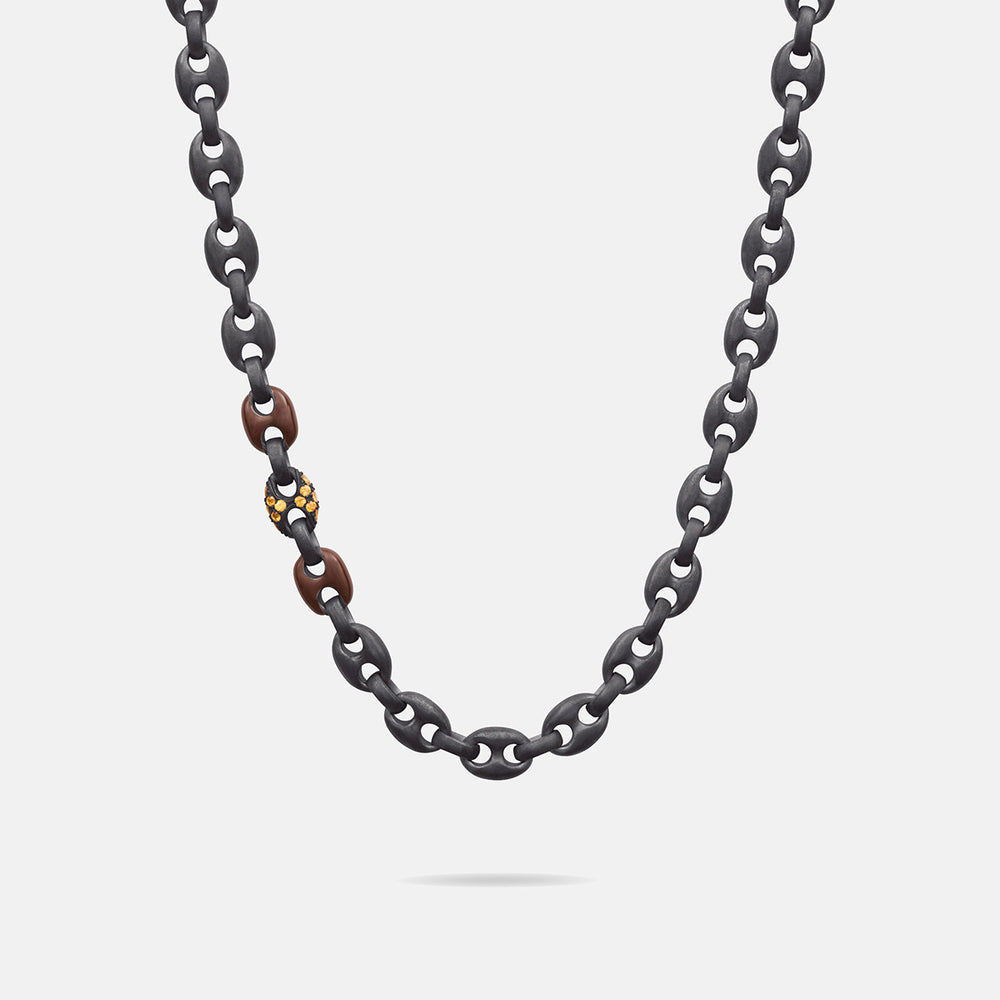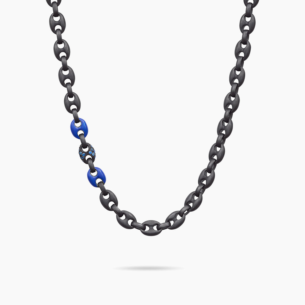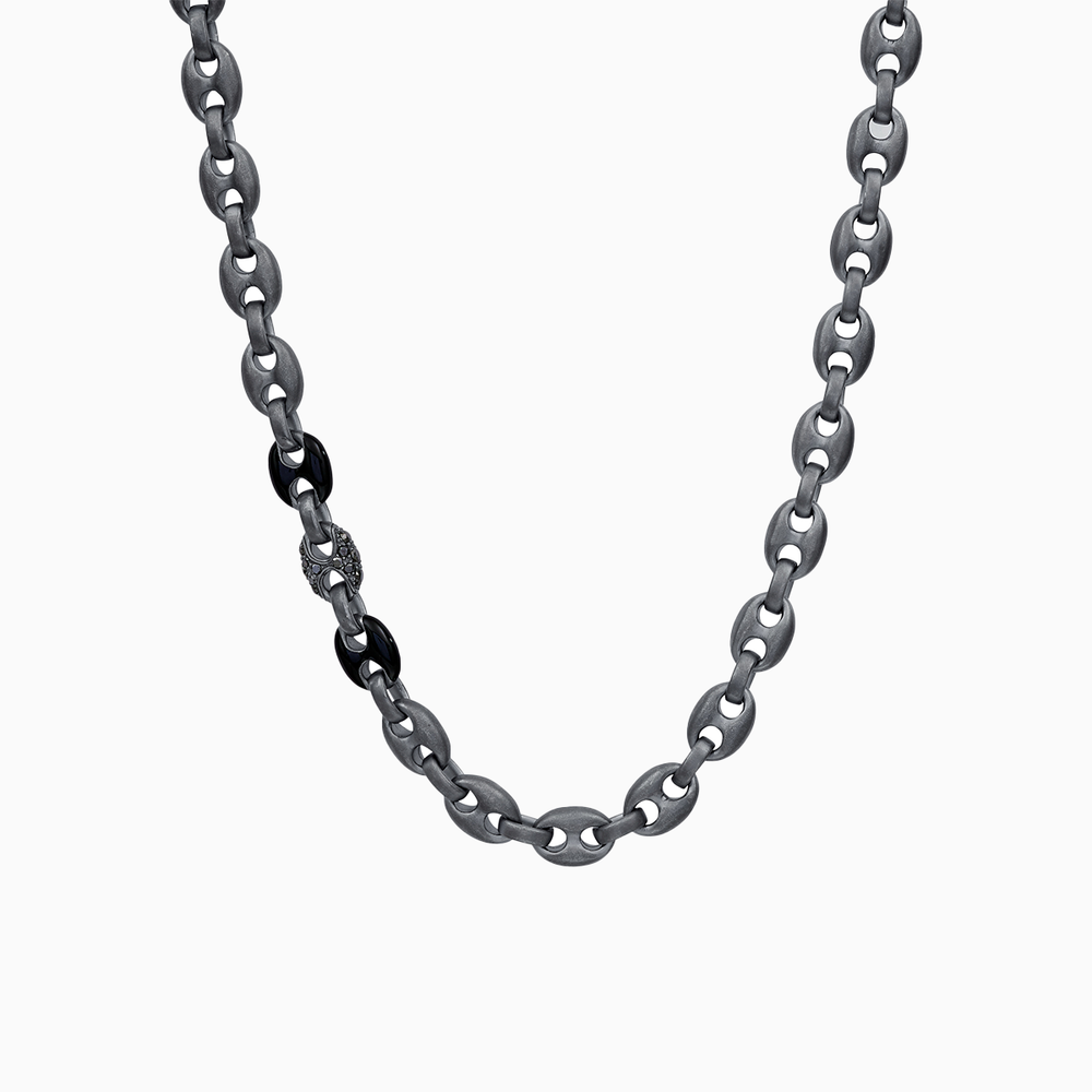 ULYSSES Marine Chain with Diamonds Oxidized Silver, Black Diamond, Black Enamel