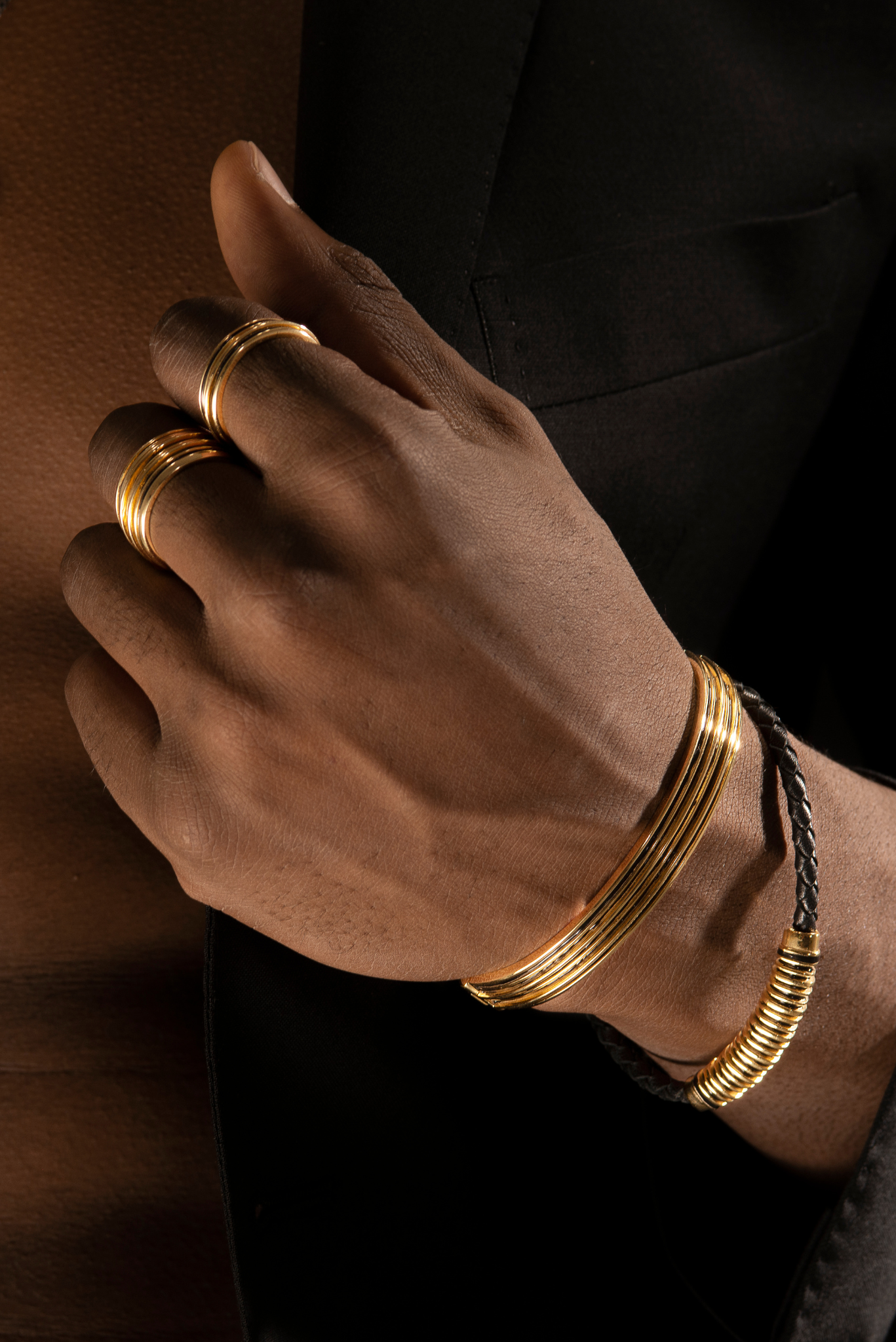 - 18K yellow gold polished vermeil and black leather for a luxurious and edgy look