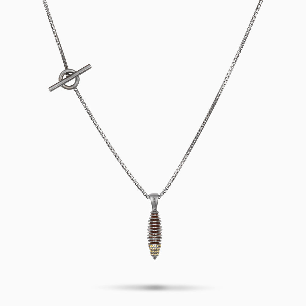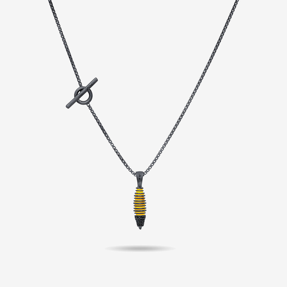 Elevate your style with the Acies Cocoon Vermeil Pendant, a luxurious symbol of transformation and elegance. This exquisite piece is crafted in 18K yellow gold vermeil, its cocoon shape reflecting a journey of metamorphosis. Half a carat of black diamonds are intricately set within the pendant, shimmering with a mysterious allure. The black enamel detailing adds a final touch of sophistication, making this pendant a true masterpiece of masculine luxury.