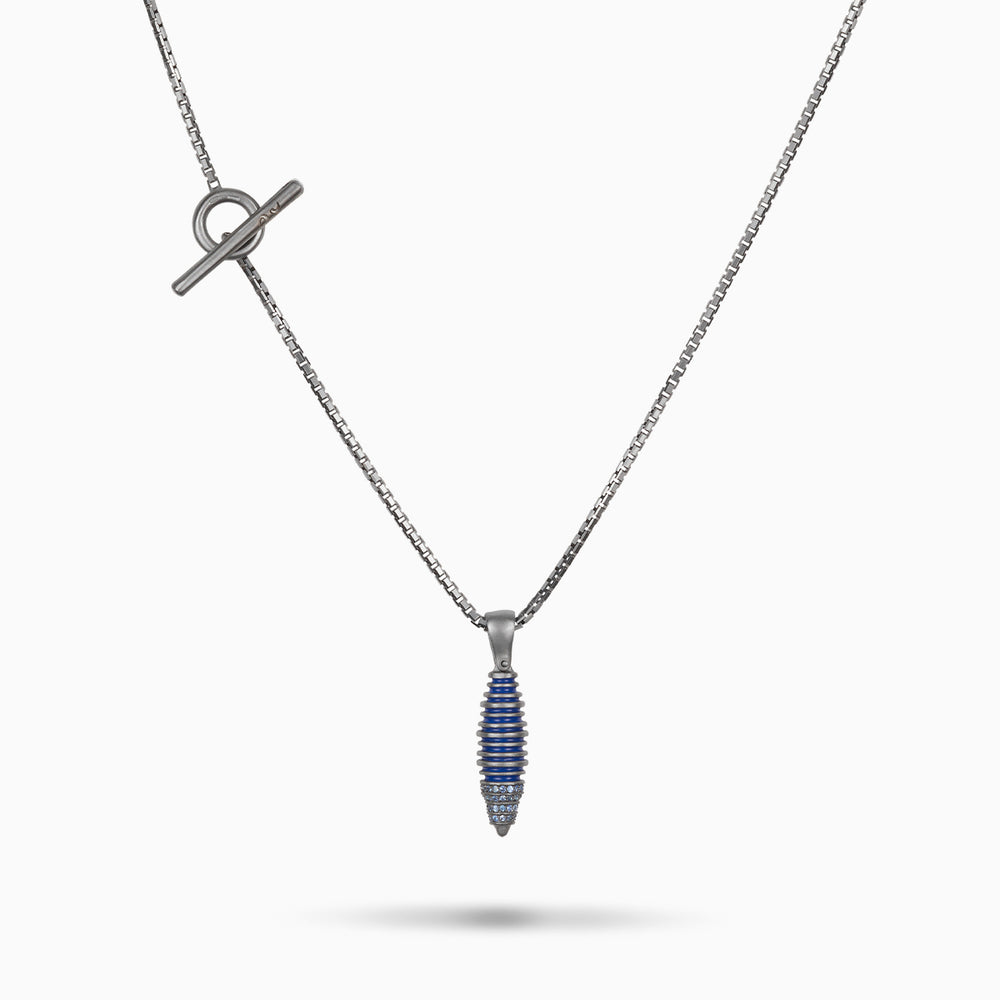 Oxidized Silver, Blue Enamel, Blue Sapphires
