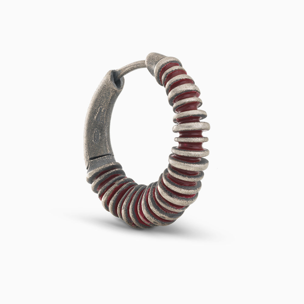 The Acies Satellite Hoop Earrings are an embodiment of modern sophistication and artisanal finesse. The oxidized silver hoops present a textured canvas that is both timeless and contemporary, while the verdant green enamel adds a dash of vibrant sophistication. These earrings are crafted for the man who appreciates the confluence of classic elegance and modern design, making a statement that is as unique as it is stylish.