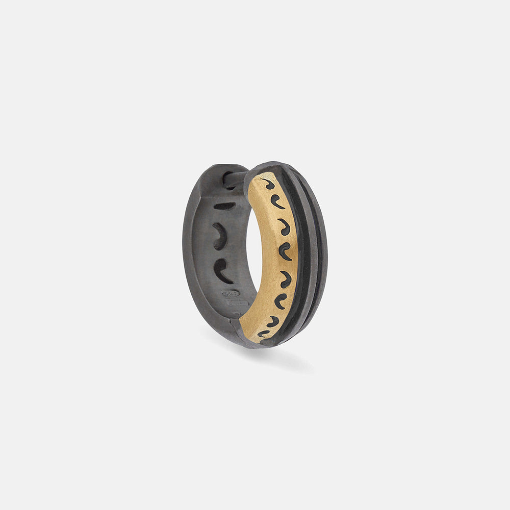 Experience the fusion of artistry and elegance with our Acies Mixed Metal Earrings. These distinctive men’s silver earrings are adorned with brushed 18K yellow gold and feature a vibrant green enamel inlay. The contrast of the black matte silver with the lustrous gold creates a luxurious accessory that’s both bold and refined, perfect for the man who values sophistication and style.