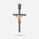 The Diamonds'N'Roses Polished Yellow Gold Crucifix Amulet combines polished 18K yellow gold and oxidized silver with 0.08 ct pave set black diamonds. This amulet is a powerful symbol of faith with a modern edge.