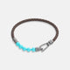 The Lash Beaded Turquoise Bracelet with Brown Leather offers a unique combination of vibrant turquoise beads and smooth brown leather, perfect for men who want to make a stylish statement. This luxurious bracelet adds a bold yet refined element to any wardrobe.