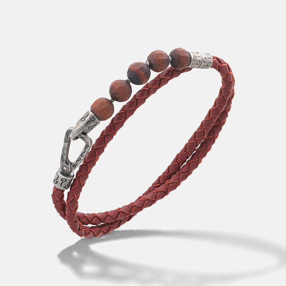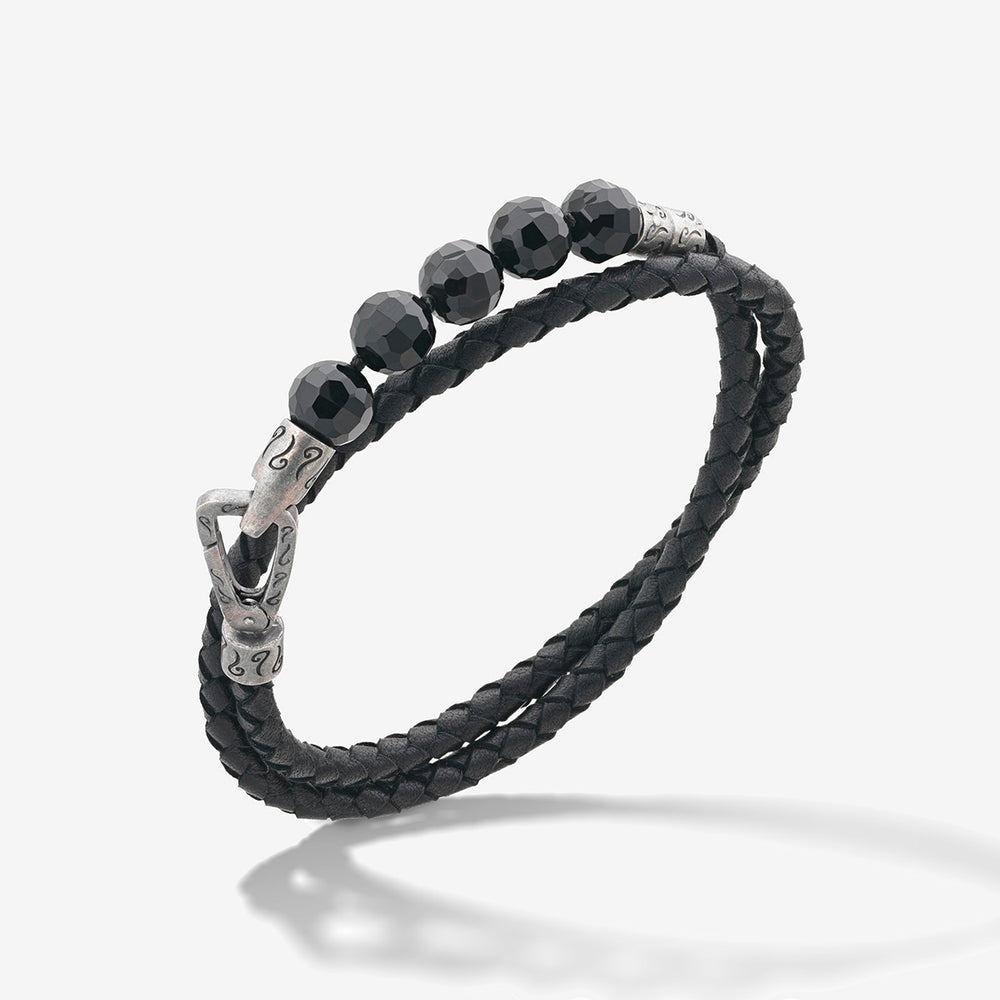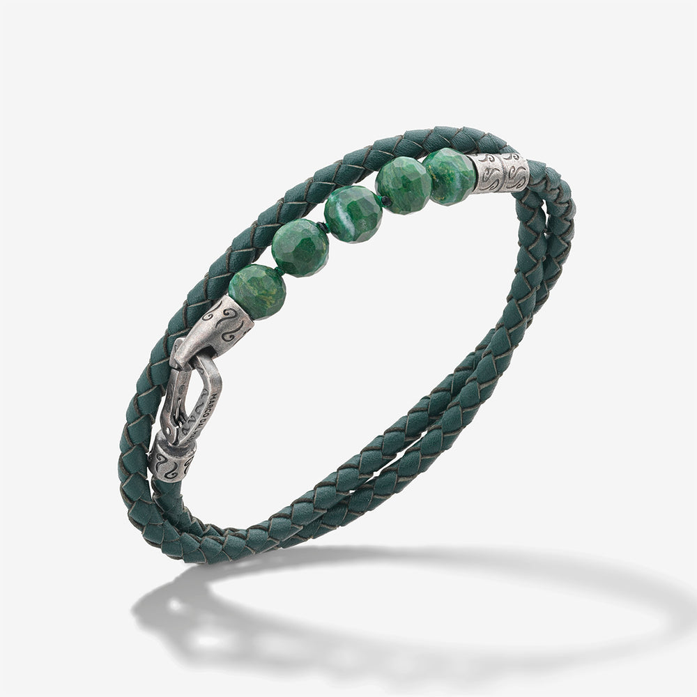 The Lash Faceted Jadeite with Green Leather Double Wrap Bracelet features rich jadeite beads paired with smooth green leather for a bold, modern look. This bracelet’s double wrap design adds contemporary flair to any outfit, perfect for men who appreciate luxury with an edge.