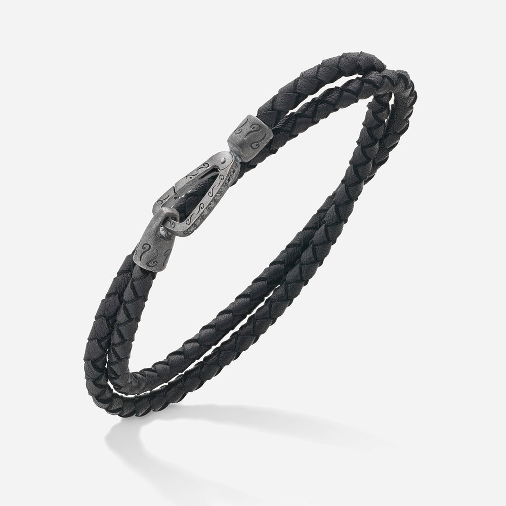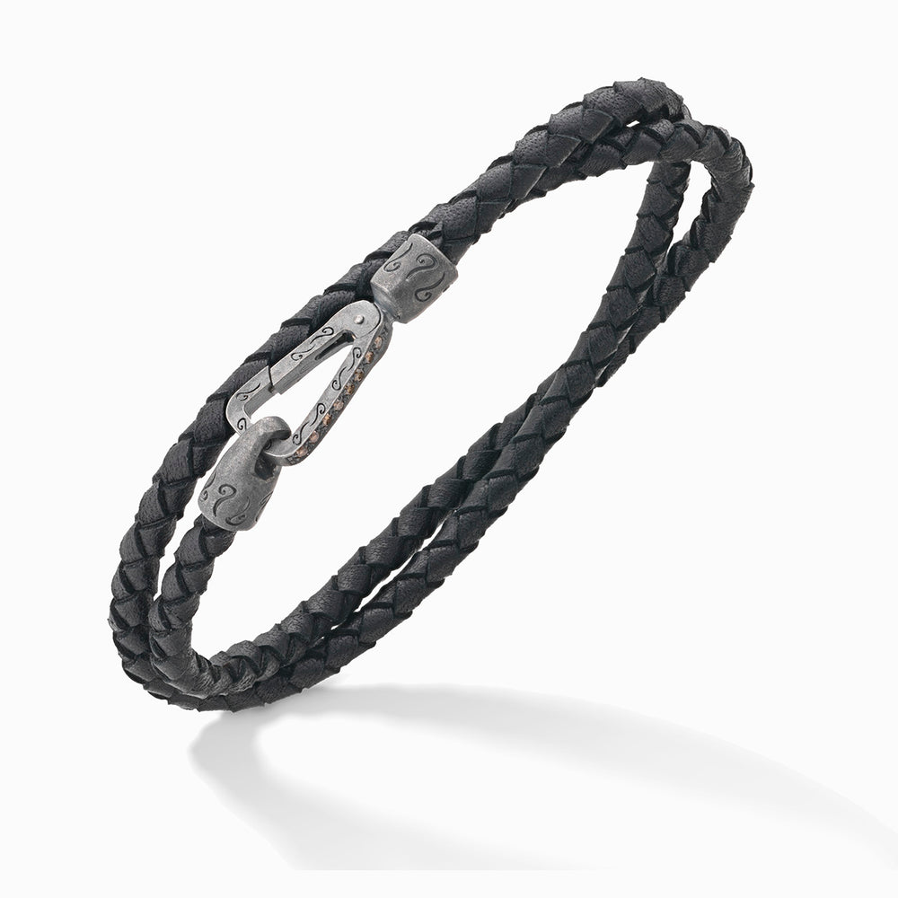 The Lash Double Wrap Bracelet with Yellow Sapphires and Brown Leather is designed for the discerning man who values both luxury and craftsmanship. Featuring 0.10 carat of yellow sapphires set in oxidized silver, this bracelet is complemented by braided brown Italian leather for a stylish, modern statement.