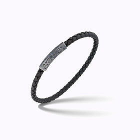 The Lash Slim Cylinder Clasp Bracelet in black leather exudes understated elegance. Crafted from oxidized silver and black woven Italian leather, this slim accessory is perfect for the modern man. Its sleek design adds a subtle touch of luxury to both casual and formal outfits, while the Italian leather ensures lasting quality.